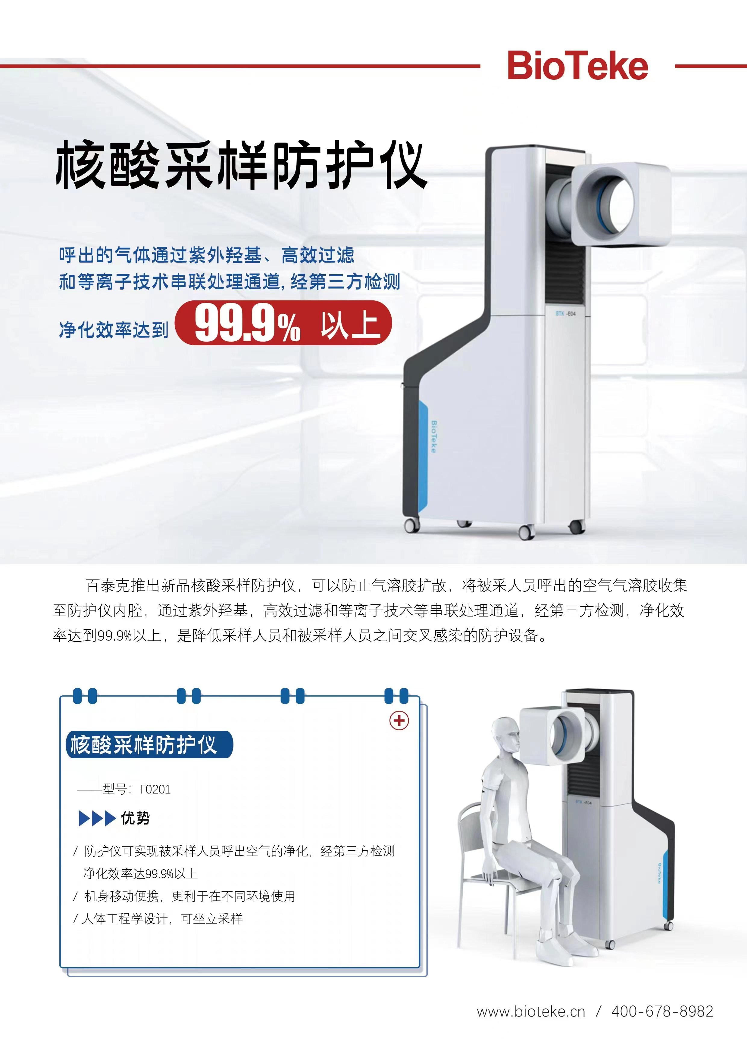 對(duì)此,百泰克生物快速成立專題研發(fā)小組,從保護(hù)被采樣者的角度出發(fā),開發(fā)可實(shí)現(xiàn)氣溶膠消毒功能的采樣儀,并迅速研制出樣品,最終成功推出國(guó)內(nèi)首款采樣防護(hù)儀,廣泛適用于目前市場(chǎng)上投用的核酸采樣小屋以及不具備采樣小屋安裝條件的場(chǎng)所。