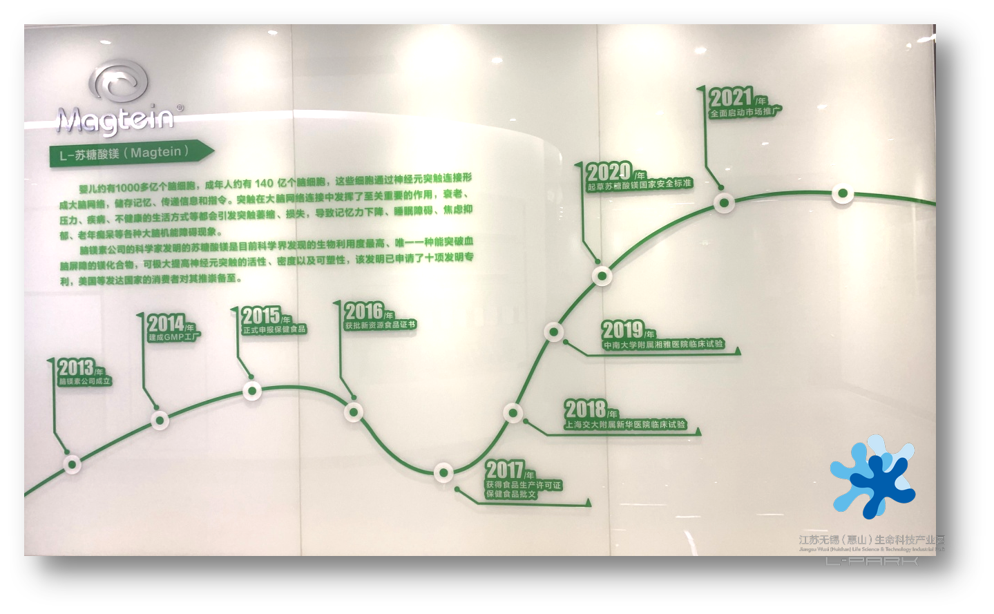 腦鎂素科技成立于2013年,專業(yè)研發(fā)生產(chǎn)腦健康產(chǎn)品,研發(fā)團(tuán)隊(duì)由L-蘇糖酸鎂全球?qū)@钟姓?/span>——美國(guó)Magceutics公司首席科學(xué)家劉國(guó)松教授領(lǐng)銜,擁有5000m2生產(chǎn)基地及醫(yī)院級(jí)凈化生產(chǎn)車間。L-蘇糖酸鎂2010年在美國(guó)被發(fā)明,通過FDA的GRAS(安全性)認(rèn)證后迅速成為美國(guó)主流腦健康產(chǎn)品;2016年通過中國(guó)衛(wèi)生部安全性審查,作為營(yíng)養(yǎng)強(qiáng)化劑新品種獲得保健食品證書。臨床試驗(yàn)證明,產(chǎn)品具有改善大腦功能,幫助改善睡眠、增強(qiáng)記憶力、緩解焦慮抑郁,同時(shí)有效預(yù)防老年癡呆。目前在美國(guó),治療阿爾茨海默癥的三期臨床試驗(yàn)正在進(jìn)行,適應(yīng)多動(dòng)癥的臨床試驗(yàn)也已在準(zhǔn)備中,未來或?qū)⒊蛇m應(yīng)多個(gè)年齡段的保健食品、功能性食品的重要原料。